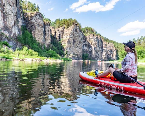 11:00 - 18:00 - сплав (во время сплава обед - остановка на маршруте) (осмотр достопримечательностей: Ваняшкинские притесы, Гидротехнические штольни, Парамоновские притесы, Скала Любви)